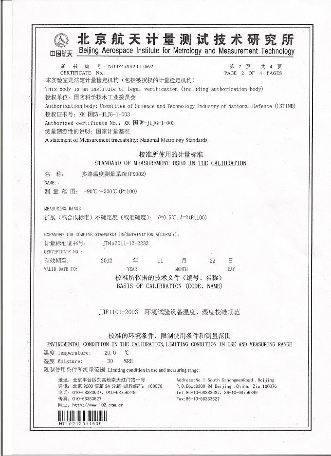 >>高低溫交變?cè)囼?yàn)箱校準(zhǔn)證書(shū)-航天計(jì)量-航天一院