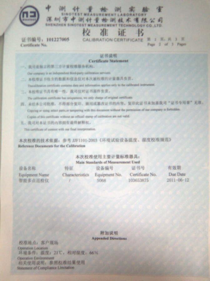 >>高低溫濕熱試驗(yàn)箱校準(zhǔn)證書-深圳中測計(jì)量-深圳精銳通