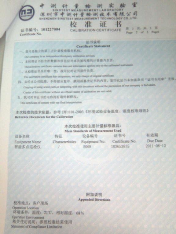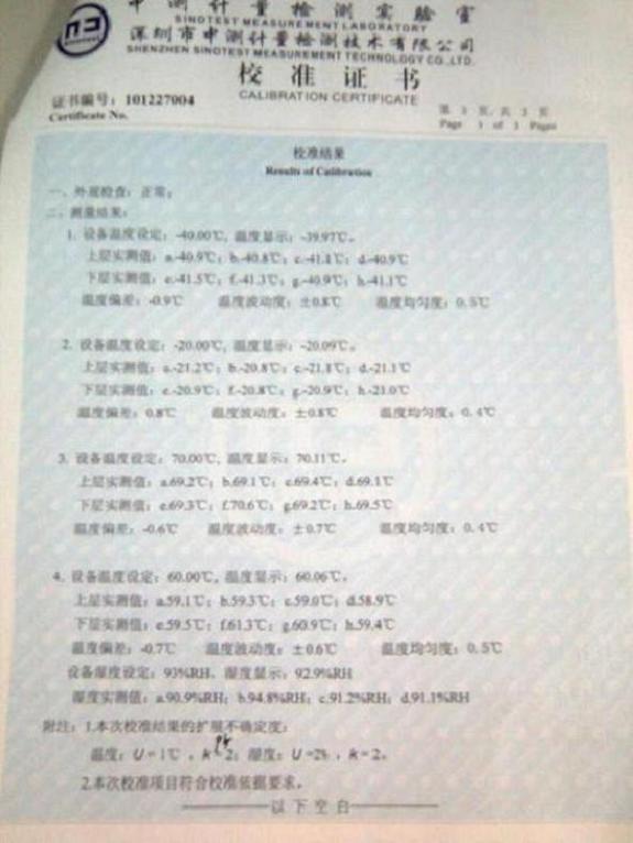 高低溫交變濕熱試驗(yàn)箱校準(zhǔn)證書-深圳中測(cè)計(jì)量-深圳精銳通