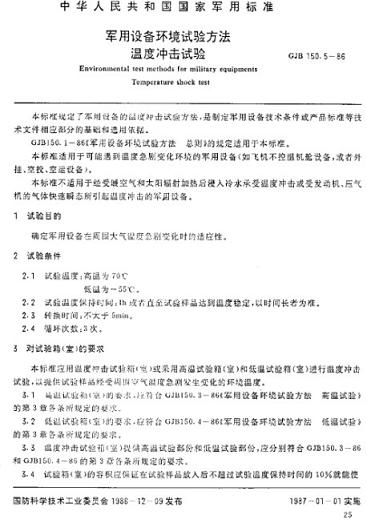 溫度沖擊試驗(yàn)相關(guān)標(biāo)準(zhǔn)