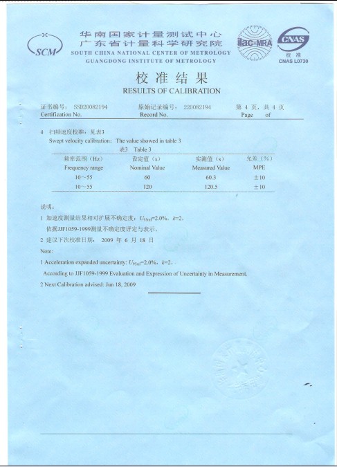 振動試驗臺校準(zhǔn)證書-廣東計量院-ABB集團